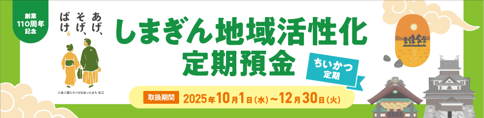 商品名~愛称~ | しまぎん地域活性化定期預金 ~ちいかつ定期~ | |